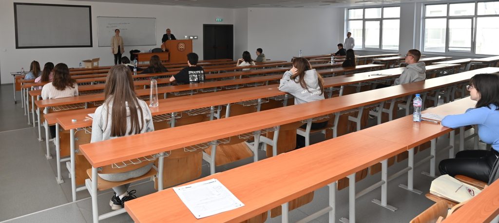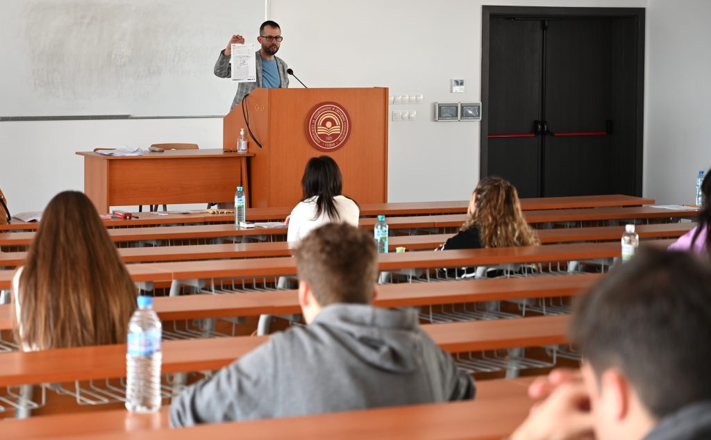 Гл. ас. д-р Кристиан Желев, преподавател в катедра „МИО и бизнес“ даде подробни инструкции на участниците относно правилата и изискванията за провеждане на изпита.