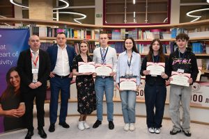 Г-жа Цветомира Христова от Аксенчър България, д-р Светла Балуцова, доц. Васил Петков и отборът на 22-ро СЕУ „Георги С. Раковски“